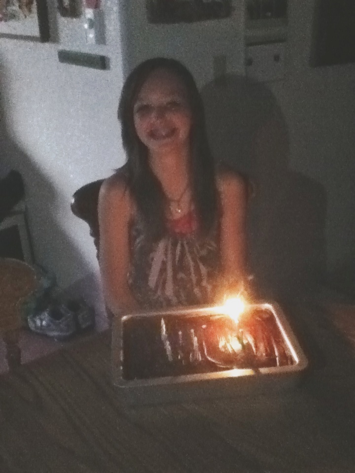 Then it was off to Grandma's house for a fun game of Yahtzee on the back porch, then cake, and presents. Fourteen candles creates quite a glow!